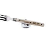 An elegant table fork made with a durable spanish ivory canvas micarta handle grip held by three matte stainless steel nails on the one-piece fork blade that allows an excellent grip, suitable for dishwashers.