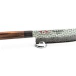 Este cuchillo de cocina modelo Nakiri Simon SJ Damascus cumple todas las expectativas de un buen cuchillo de cocina de tabla y corte de alimentos medios con el añadido que, gracias a su hoja martilleada, crea unas bolsas de aire que despega el alimento y gracias a su construcción tradicional japonesa Hocho, con la espiga de la hoja encastrada en el mango, se siente muy ligero y con el equilibrio del cuchillo con cierto predominio en la hoja.