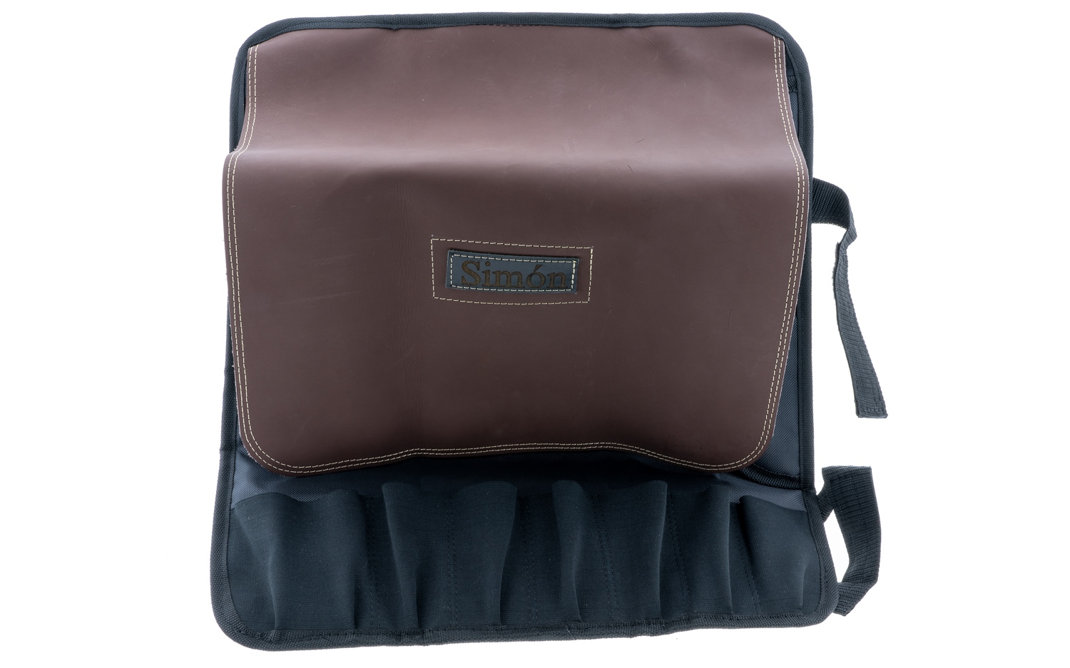 Manta de cuchillos para proteger y transportar sus cuchillos realizada en cordura acolchada con logo cosido en piel interior para siete cuchillos de diferentes tamaños realizada con solapa interior de cuero piel flor en color marrón y labio interior derecho para evitar que se puedan salir los cuchillos de la manta. Interior cajeados elásticos divididos en siete compartimentos para mayor sujeción, muy ligera y cómoda para transportar o introducir en una mochila, realizada en España.