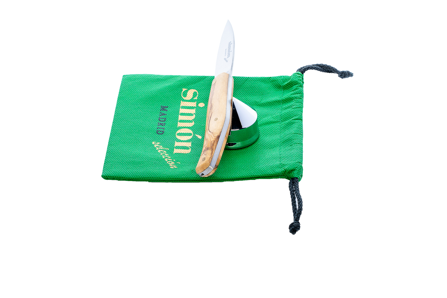 Esta navaja de bolsillo modelo Pastora Olivo Simón pequeña, realizada en acero aleado con Vanadio, tiene el tamaño pequeño que no llega a cubrir toda la mano, y es útil como navaja de bolsillo para cortar una soga o cuerda o como navaja para comer. Esta provista de forros interiores de aluminio pulidos mates de refuerzo, sin virola, con mango de madera de raíz de olivo natural español y clavada. Fabricada en España para Cuchilleria Simón Selección.